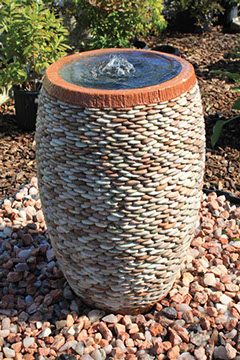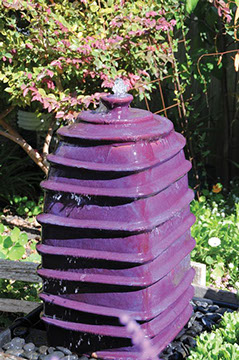 The small size of a Ceramic Vase Fountain means you can build and enjoy a beautiful fountain anywhere in your yard- front or back! You can create one in as little space as 16” x 16”. These are great on patios and decks too! Bury the basin into the ground or keep elevated using stone or landscape block.