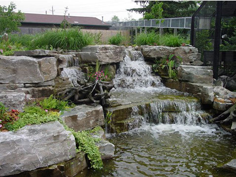 1. The first of these elements is the filtration system consisting of a mechanical skimmer filter and biological waterfall filter. The skimmer will not only prefilter the water and house the pump; it will also skim debris from the water’s surface to prevent the accumulation of debris on the ponds bottom. The waterfall box provides surface area for beneficial bacteria to colonize and remove excess nutrients from the water thereby keeping your pond clean and clear.